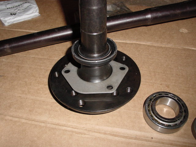First thing that goes on the shaft is the retainer plate. Don't forget this, otherwise you will be kicking yourself later when you have to remove everything else to get the plate on.